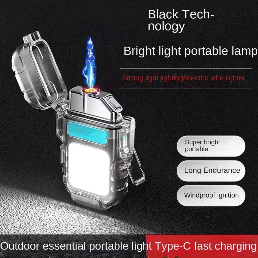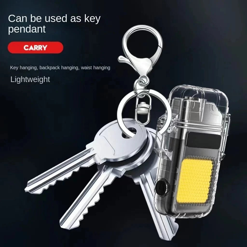 Outdoor Quick Charging Mini Keychain Battery Light Wire Lighter Portable COB Work Light Strong LED Flashlight Cigarette Lighter