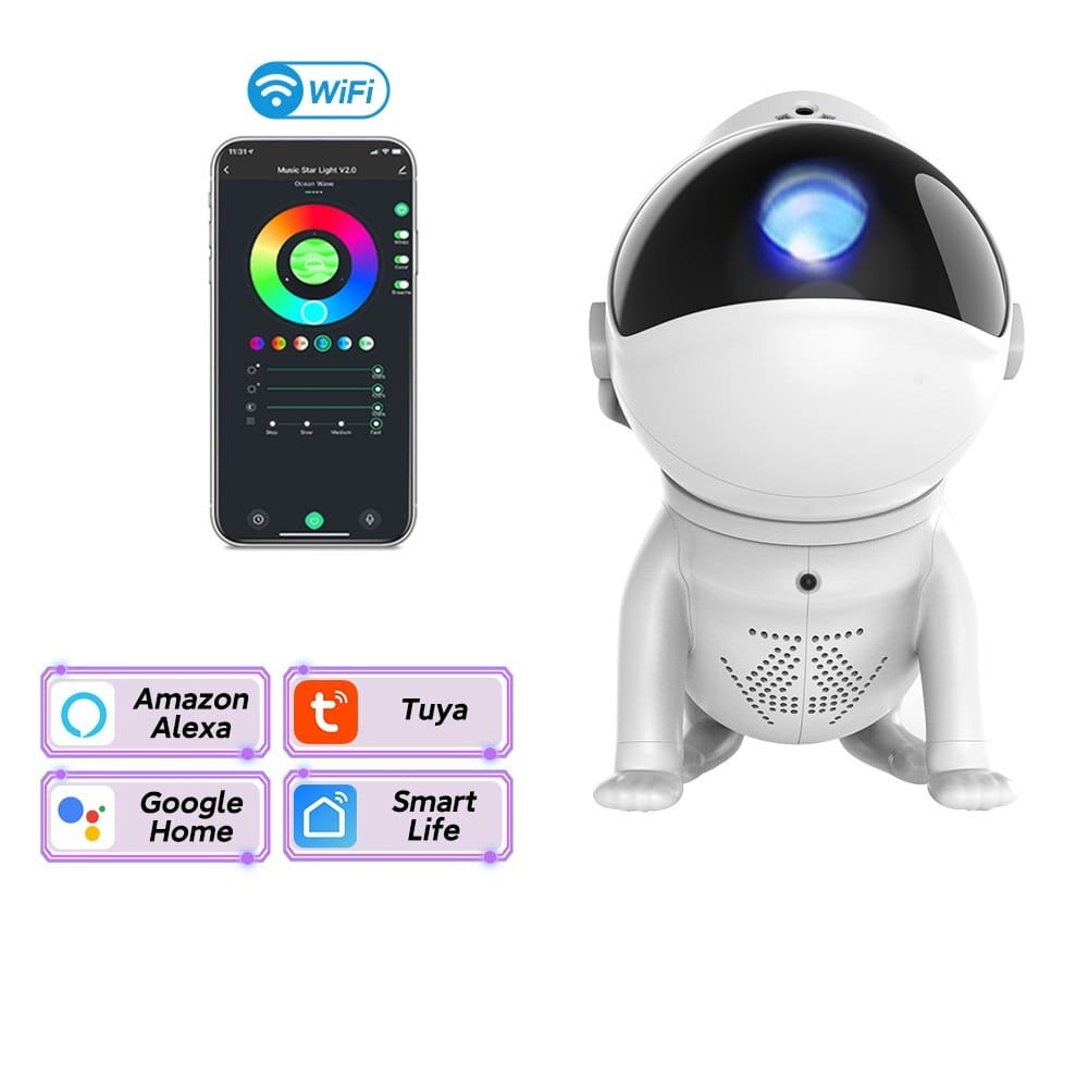 Remote Control and APP Control planetarium projector --You can download through the app intelligent control, You can also use the remote control or back button to control brightness and rotation speed to customize the projection effect you like. Star or nebula patterns can be used simultaneously or separately on this astronaut light projector for kids.
